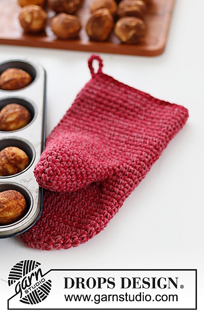 **Crocheted barbeque mitten in 2 strands DROPS Paris. Theme: Christmas.**