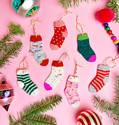 Fiber enthusiasts who want their holiday decor to reflect their knitting addiction will delight in whipping up these colorful little socks to hang on the tree, or string into a garland for the mantle!