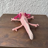 The final size with worsted weight is approximately 26cm long or 10 inches. With bulkier yarn and a larger hook, you can easily increase the size.