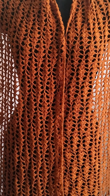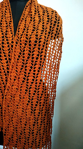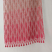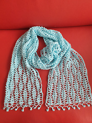 This is a beginner friendly pattern for a lace scarf using shell stitches. The scarf measures about 32 cm wide and 180 cm long including the trim after blocking. The length is adjustable.