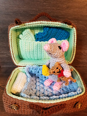 This pattern is for an opening suitcase as well as a mouse to live inside it with all the necessary outfits and accessories!