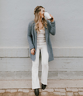 The perfect everyday cardigan is as integral to your wardrobe as a classic white tee or a well-fitting pair of jeans. This charming, flowy cardigan is possibly the most versatile design in the entire book, an everyday-essential that you’ll be reaching for time and time again. The slim-fit sleeves perfectly balance this relaxed cardigan, while the eye is drawn to the statement collar, a finishing detail that really brings this design to life. Slip it on for a comfortable yet polished look for a casual night out or a cozy weekend outfit. One thing’s for sure: You’re going to need one in every color.
