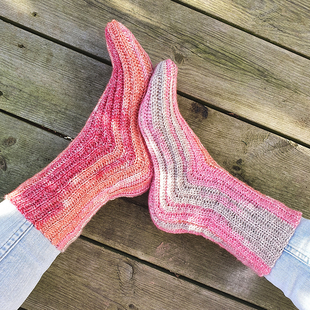 "Easy Breezy Ribbing Socks" is my attempt to design a very simple crocheted sock where comfort is a priority.