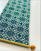 So, here the bell pulls were just long narrow embroidery pieces used to decorate homes. Ask any icelander and they‘ll confirm that these were found in ALL respectable grand-mother‘s homes around the country! I absolutely love these and have actually collected them for years, but never made one myself. So I took great care when designing FROST to have the pattern work so that it looks the same both vertically and horizontally, and this way you can make a FROST bell pull by working it sideways and thus only having the ends at the top and bottom of your piece. So even if alas I have no servants to call, I am now finally making my very own bell pull!