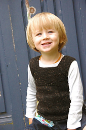 Milo is knit entirely in the round from the top down. Increases are used to shape the mitred bodice, with a simple cable gracing the front of the vest.