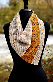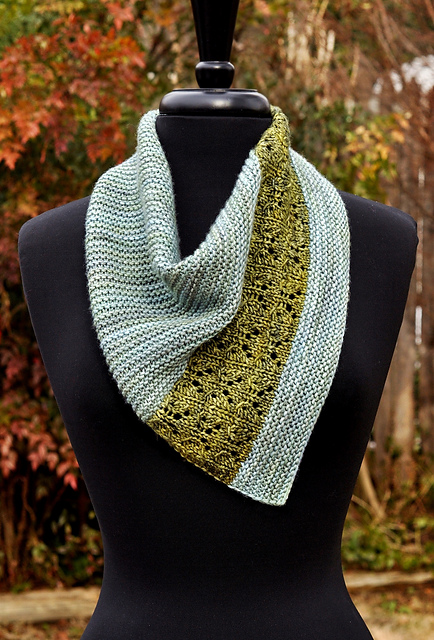 Sonatine is a stylish, asymmetrical cowl that is a reimagining of my Satie shawl design, as both feature the same Art Nouveau-inspired, organic lace pattern surrounded by garter stitch. Available in two wearable sizes—small and medium—and both one-color and two-color versions, Sonatine is the perfect accessory for those transitional seasons when you need a little something extra to keep your chest warm while wearing an open jacket or a sweater.