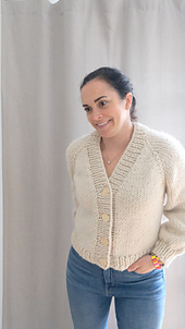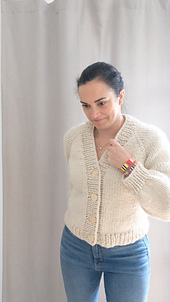 The cardigan is written in six sizes, 1 (2, 3, 4, 5, 6), with a finished bust size of 33.5 (37.5, 41.5, 45.5, 49.5, 53.5) in/84.5 (95, 105, 115, 125.5, 135.5) cm. The cardigan is intended to have about 3-6 in/7.5-15 cm of positive ease so pick a size that will provide the intended ease or adjust to your desired ease. For example, if you have a 38 in/96.5 cm bust, a size 3 would be ideal for about 3.5 in/9 cm of ease. Feel free to adjust body length and armhole depth as desired. You can try on the cardigan as you go.
