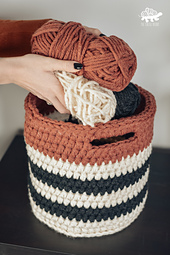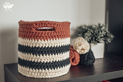 Use it to store yarn or even as a pant pot cover! This is a beginner friendly pattern that uses basic crochet stitches. The instructions show you how to use 3 colors to create a striped design, but feel free to use as many or few colors as you’d like.
