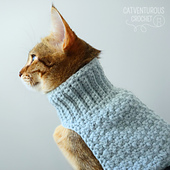 **IMPORTANT: These sweaters are intended to be practical and fun for you and your cat. For their safety, please supervise your cat at all times while they are wearing this sweater or any other item that secures around the neck, or within which claws may become entangled. Please ensure all buttons are securely attached and, preferably, at least 20mm in diameter to avoid a choking hazard. PLEASE DO NOT USE THIS PATTERN TO MAKE YOUR CAT HATE YOU! Reward your meowdel with tasty and healthy treats.**