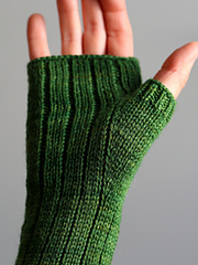Pilea mitts are worked in the round, seamlessly from the bottom up, in 3x1 ribbing.