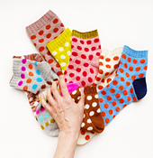 The Little Dots Socks are pure JOY. Knit cuff down, this beginner-friendly colorwork pattern is a relaxing knit that allows you to explore endless color palette ideas! The pattern is written for five sizes and includes a full-color chart for the dots, plus a bonus chart for a fun mod!