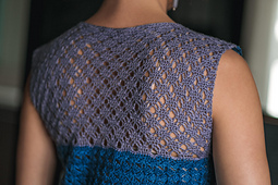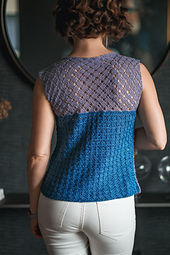 Crocheted in two identical pieces pattern-wise, this airy top is accented with a simple, lace stitch yoke. Switch things up by swapping the colors on one piece, and you can change the direction you wear it for a different look. Customize it even further in the assembly: begin the side seams a couple of inches above the hemline to create side vents, or stitch the front and back pieces together from the very edge for a solid bottom border. Seam the shoulders from the neckline to the outer edge, or create peek-a-boo vents by stitching together just an inch or two at the neckline and outer edge, leaving the rest of the top edge open.