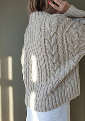 In cabled pattern using 5.5 mm [US 9] circular needles: