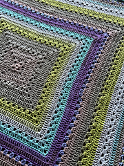 This pattern is for a continuous granny square blanket using the 6DKB Stitches. Start in the center and keep going until its as big as you like!Ive created a delicate, beautiful shell stitch border for this blanket as well, which gives the finished blanket a really polished, pretty look. Enjoy.DetailsUS TerminologySkill Level: EasyGauge: 16 sc x 20 r on H-8 (5 mm) in yarn shown, however you may use any yarn.Finished Size: Blanket shown is 40 x 40 but you can easily vary to your liking.MaterialsShown in Lion Brand Mandala (color changes controlled)@ 2000 yards (I used approximately 3.5 cakes)Yardage Estimates for other yarnsFor DK or #3 weight yarn you will need approximately 2200 yards for a 40 baby blanket and 3000 yards for a 60 throw-sized blanket.For Worsted or #4 weight yarn you will need approximately 2000 yards for a 40 baby blanket and 3400 yards for a 60 throw-sized blanket.Hook: Furls Odyssey (5 mm)This pattern can be made with any yarn and corresponding hook.
