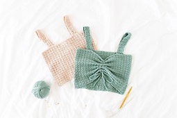 Incredibly versatile, comfy and chic, the Mya Crop Top is a great beginner friendly crochet pattern! With thick straps, a fitted look and 4 different necklines – square neck, bow, sweetheart and gathered – this textured crop top is the perfect addition to your summer wardrobe.