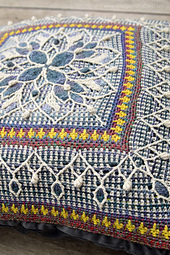 Spring Whispers square consists of the central floral part and two borders. You can complete the large square with both borders, and stitch it by hand to the front of the ready fabric pillowcase in the same, or slightly bigger size.