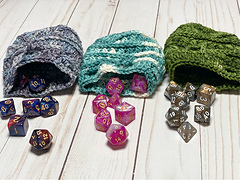These small drawstring bags are about 5" tall and 4" across when laid flat. They are the perfect size to use as a dice bag, or to hold any trinkets or small items.