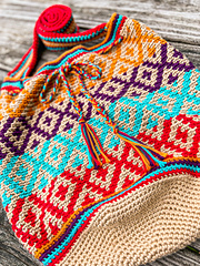 This tapestry crochet bag features a colorful diamond pattern. No matter where you take this bag, you will be sure to stand out with this colorful crochet bag!