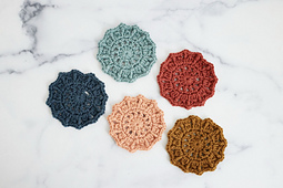 Perfect for a garden party or festive brunch, these multi-color mandala coasters add flair to the table and help identify guests’ drinks.