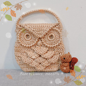 **Athena Owl Bag was inspired by vintage macrame owl designs. The feather-like shell stitch decorates the front of the bag, and crab stitch trim finishes the edges. Crochet your own strap or finish the look with a pre-made handbag strap!**