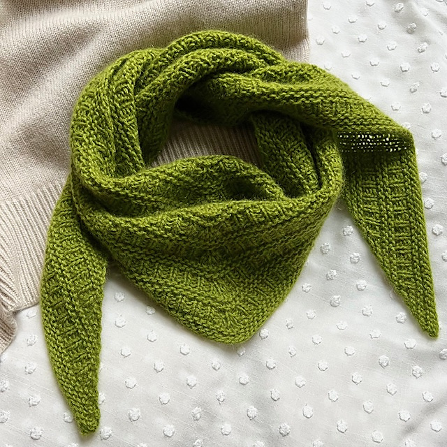 Sorgenfri tørkle strikkes frem og tilbake på en lang rundpinne i strukturstrikk. Tørklet kan knytes en gang rundt halsen og passe godt både til barn og voksen.