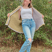 *Cardigan dimensions WITH scallops = 48 and a 1/2 inches wide x 24 and a 1/2 inches long for two-toned version with 21 rows, and 46 inches wide x 24 inches long for solid brown version with 20 rows.