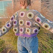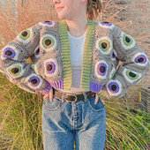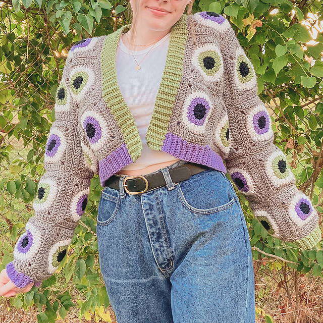 *This pattern fits sizes XS-M (maybe even L) and is made up of 45 Eyeball Granny Squares. If needing a larger size, making more squares and assembling as needed should be an easy fix.