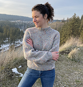 NO SEAMING and NO TURNING ROUNDS! Made in continuous rounds with a simple ribbed stitch for the collar, hem and wrists, this Mt Rainier Tweed Pullover Sweater comes together simply and quickly. The light gray heather with bright specks of color is irresistible and the acrylic/rayon blend fiber is next-to-skin soft.