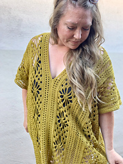 Make a splash this Summer with The Kait Cover Up crochet pattern. This stunning cover up is made of two lacey panels featuring a beautiful floral design, which are then seamed together to create an oversized flowy cover up perfect for all shapes and sizes. Written in US terms.
