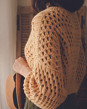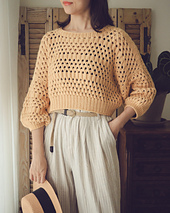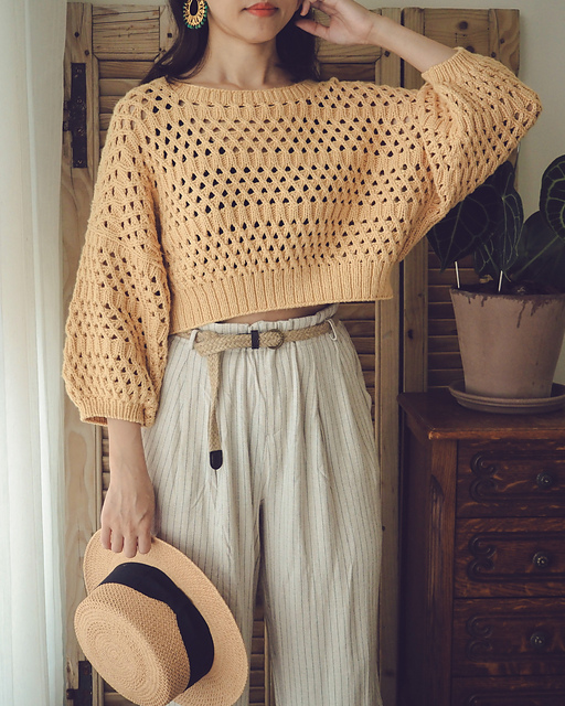 The cropped style is designed to go well with high waisted pants or skirts. Since it’s a top-down sweater, you can make adjustments as you knit and decided to go with a longer hem.