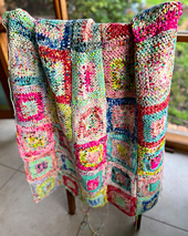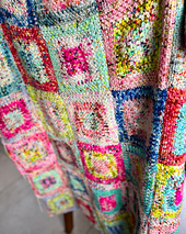 The blanket is made from individual squares that are joined together once you have enough for the size blanket you want. They can be joined either by hand sewing or crocheting the squares together.