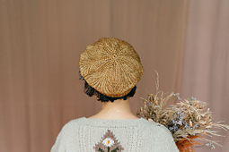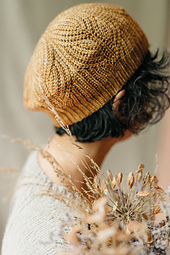 **Notes:** Aureole is made up of 6 attached wedges for the beret option and 4 attached wedges for the beanie option, crocheted lengthwise from the brim to the crown. The leaf motif is shaped with short rows in crochet Brioche stitch, and the brim edge is worked in crochet ribbing. One seam closes the hat and crown.