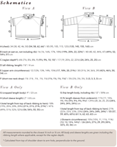 Sizes A (B, C, D, E) (F, G, H, I) with finished measurements of 34 (38, 42, 46, 50) (54, 58, 62, 66)” / 85 (95, 105, 115, 125) (135, 145, 155, 165) cm.