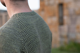 Sweater is worked from the top down, flat to start and then joined in the round at front when neckline shaping is completed. The rest of the body is worked seamlessly in the round. Sizes are referred to as A (B, C, D, E)[F, G, H, I, J] within the pattern.