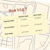 -You get height, yardage, needle size, and gauge info for fingering, worsted, and bulky