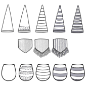 5 hat options, 5 body options, 2 noses, 3 beards, and 2 arm designs!