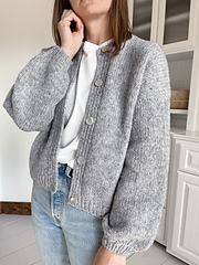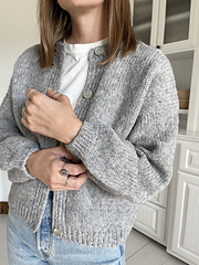 The Traveler's Cardigan is worked from the top down and is closed in the front with buttons. It features back shaping and dropped shoulders for a relaxed fit. The sleeves are designed to be loose and finished with a balloon cuff. The button band is worked as you go which means less finishing work. A classic design meant for everyday wear.