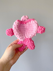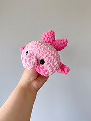 This blobfish pattern doesn't require any stuffing. One of the key design features is that the mouth is worked into the piece as a regular round and then left open, with the bottom of the piece pushed upwards to create a concave base.