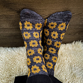 *Sunflower Power* (black and yellow all over colourwork socks)