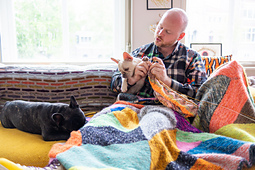 *Gather a colorful pile of fingering weight yarns to knit this modular garter stitch blanket. Two strands of yarn are always held together to create melting marl color blocks. Each section is knit seamlessly by picking up stitches and attaching new sections to previous sections while you knit. Use leftover yarns from your shawls or socks and try incorporating fluffy mohair or suri alpaca yarns into your palettes for cloudy soft shapes. This blanket is a great size for your couch, so you can bundle up in all your favorite yarns as you knit your next project.*