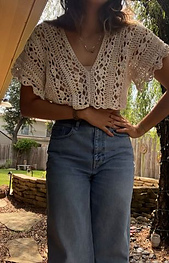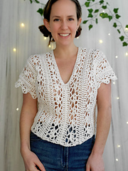 A relaxed, loose, lacy crocheted tunic perfect for light summer layering. It is meant to be worn with lots of positive ease.