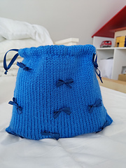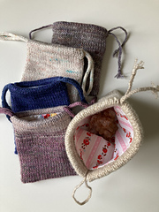 You may also choose to knit i-cord drawstrings for the larger bags. Ribbon or any other drawstring alternative may be used as well for drawstrings.