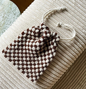 The Scrap Bag is worked seamlessly from the bottom-up in the round until the body of the bag is completed. The stitches are then divided evenly into two sections, and a folded hem is worked on both sides of the bag. Finally, simple crochet drawstrings are created and inserted through the folded hems to create a closure.