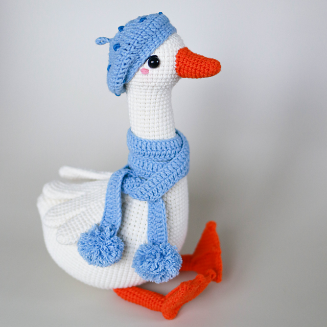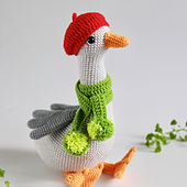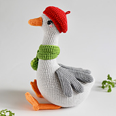 This pattern contains written instructions for the goose and him clothes (Beret, scarf and bow)