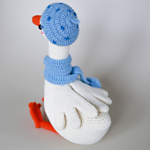 All parts of the toy are always worked in continuous spiral rounds. Body, neck and head are worked in one piece together from the bottom up. Paws, beak and wings are worked separately and sewn on afterwards. Clothes are removed.