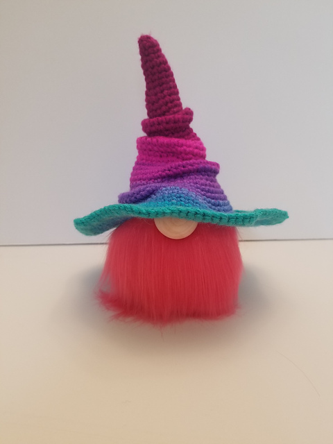Witches are my favourite part of Halloween! Combine this with my general obsession with gnomes and the result is this cute wrinkly witch hat that sits in the palm of your hand. Work the hat as written with medium weight yarn to outfit a gnome or other stuffed animal or ornament, or increase / decrease the size by changing your yarn weight or hook size. Gauge isn’t important for this pattern, but I’ve made some recommendations below to create either a ~6 inch or ~8 inch tall hat. Thank you for trying my pattern!