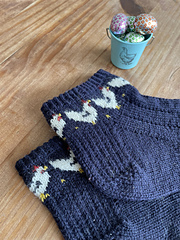 Eggs are an important part of Easter celebrations, whether they be actual eggs or chocolate ones. I could not resist creating a fun shortie sock dedicated to eggs and the chickens who lay them for us. This is also a perfect sock for any chicken owners out there. My sister is unable to own a cat or a dog because of her partner’s allergy to fur, so she rescues chickens instead. She now often has a chicken coming to visit in the evening to sit and watch TV with the family (not advised, they’re quite messy!). So, this pattern is dedicated to my sister and her beloved brood of hens.