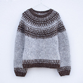 **BADGER SWEATER** is a soft and warm sweater that is worked from the top down. An Italian cast-on is worked at the neck edge, which is followed by a twisted rib edge and a circular yoke worked in a charted stranded pattern. Short rows are worked before the yoke is divided for body and sleeves to create roominess and a good fit. The stranded pattern is worked from the right side only, so this design is a good project for a knitter without much experience with stranded knitting.
