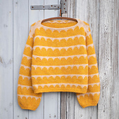 **ROBINIA SWEATER** is a soft and feminine sweater with an elegant pattern worked in stranded knitting. The sweater is worked from the top down. First the back and front yoke are worked back and forth, then the two sections are joined for the body, which is worked in the round. Stitches are picked up and knitted along the armholes and the sleeves are worked down and finished with cuffs in twisted rib. Short rows are worked both on the front and back yoke and on the sleeves to create a really nice fit.