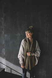 In my opinion, every wardrobe needs a Big Cozy Cardi to pull on all year round! This cocoon cardi is full of texture and cozy to the max with its baby Suri alpaca collar! This sweater is worked from the bottom up with a small amount of seaming to create the armholes. The shawl collar and sleeve cuffs are then picked up and knit on to the body of the sweater.